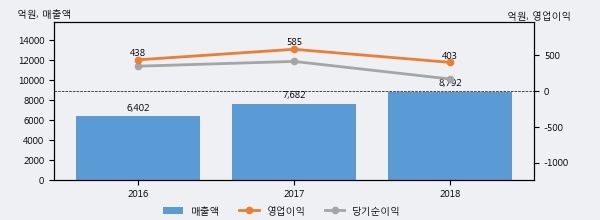 최근 실적을 살펴보면 2018년 매출액이 최근 3년 중 가장 높은 실적을 기록했음을 알 수 있다. 이전 최고 실적이었던 2017년 보다도 14.5%(1110억 1천만원) 늘어난 것으로 나타났다.