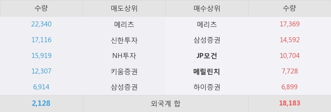 거래원 동향은 JP모건, 메릴린치, 메리츠 등이 매수 상위 목록에 위치하고 있다.