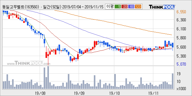 동일고무벨트의 2018년 매출액은 전년대비 1.2% 늘어난 2630억원이고, 영업이익 또한 전년대비 79.9% 늘어난 121억원을 기록했다. 이 회사의 매출액 증감률과 영업이익 증감률은 각각 코스피 하위 41%, 상위 15%에 해당된다.