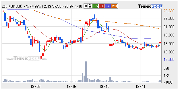 조비의 2018년 매출액은 전년대비 0.9% 늘어난 605억원이고, 영업이익 또한 전년대비 17.4% 늘어난 19억원을 기록했다. 이 회사의 매출액 증감률과 영업이익 증감률은 각각 코스피 하위 40%, 상위 32%에 해당된다.