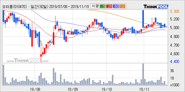 오리콤의 2018년 매출액은 1828억으로 전년대비 9.1% 상승했고, 영업이익 또한 107억으로 전년대비 66.6% 상승했다. 이 회사의 매출액 증감률과 영업이익 증감률은 각각 코스닥 상위 41%, 상위 20%에 해당된다.