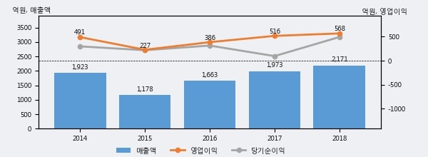 최근 3년간의 실적을 살펴보면 안정적 성장세를 보이고 있다. 최근 3년간 매출로 볼 때 매년 증가하고 있다. 다만 최근에 그 증가폭이 다소 감소하고 있다.
