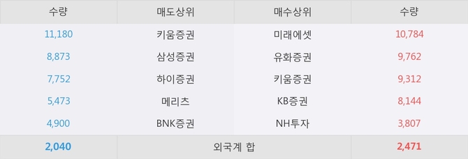거래원 동향은 삼성증권, 메리츠 등이 매도 상위 목록에 나타나고 있다.