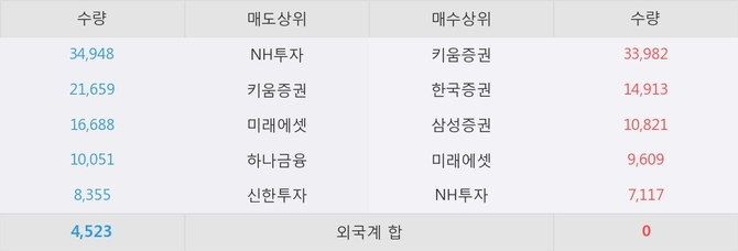 거래원 동향은 NH투자, 미래에셋, 하나금융 등이 매도 상위 목록에 나타나고 있다.