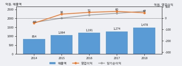 최근 3년간의 실적을 살펴보면 안정적 성장세를 보이고 있다. 최근 3년간 매출로 볼 때 매년 꾸준히 증가하고 있고 그 증가폭도 확대되고 있다.