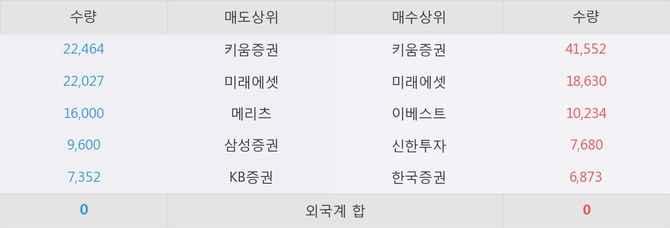 이 시각 주요 거래원은 미래에셋, 키움증권, 이베스트 등이 매수 상위 창구에 자리하고 있다.