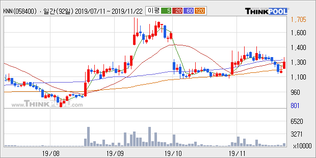 KNN의 2018년 매출액은 전년대비 -1.9% 줄어든 641억원이고, 영업이익 역시 전년대비 -9.2% 줄어든 78억원을 기록했다. 이 회사의 매출액 증감률과 영업이익 증감률은 각각 코스닥 하위 36%, 하위 49%에 해당된다.