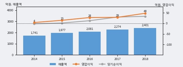 최근 3년간의 실적을 살펴보면 안정적 성장세를 보이고 있다. 최근 3년간 매출로 볼 때 매년 꾸준히 증가하고 있다. 다만 최근에 그 증가폭이 다소 감소하고 있다.