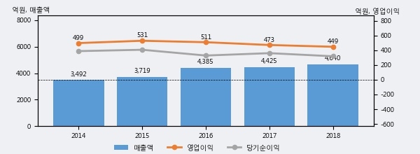 최근 3년간의 실적을 살펴보면 안정적 성장세를 보이고 있다. 최근 3년간 매출로 볼 때 매년 꾸준히 증가하고 있고 그 증가폭도 확대되고 있다.