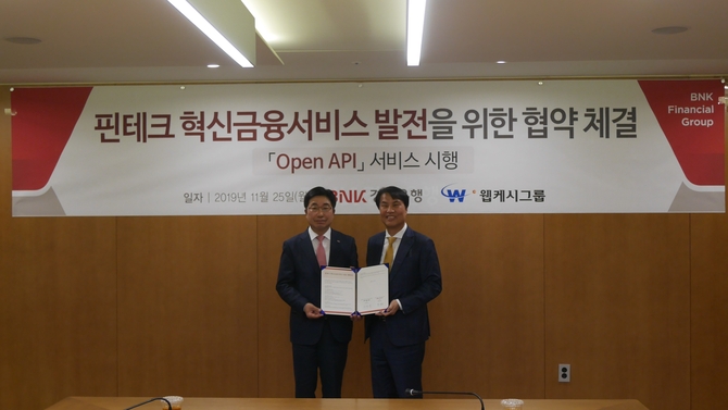 (조세금융신문=이학명 기자) B2B 핀테크 기업 웹케시그룹은 25일 BNK경남은행과 함께 혁신금융서비스 발전을 위한 MOU(업무협약)를 체결했다고 밝혔다.