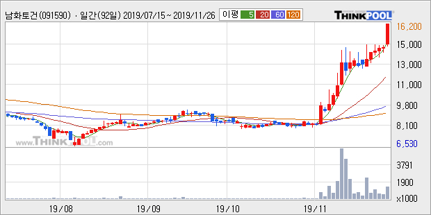 남화토건의 2018년 매출액은 517억으로 전년대비 -22.1% 하락했고, 영업이익 역시 12억으로 전년대비 -77.9% 하락했다. 이 회사의 매출액 증감률과 영업이익 증감률은 각각 코스닥 하위 11%, 하위 22%에 해당된다.