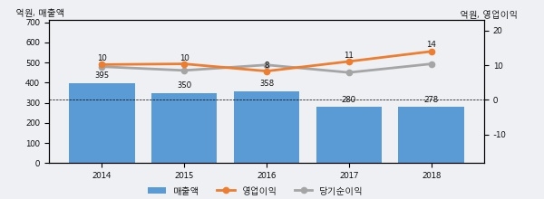 제일바이오의 2018년 매출액은 278억으로 전년대비 -0.6% 하락했고, 영업이익은 14억으로 전년대비 26.1% 상승했다. 이 회사의 매출액 증감률과 영업이익 증감률은 각각 코스닥 하위 39%, 상위 31%에 해당된다.