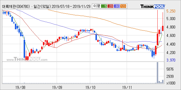 [그래프]대륙제관 일봉 차트