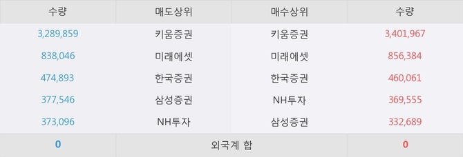 아직까지 외국계 증권사 창구를 통한 매매는 발생하지 않고 있다. 그리고 이 시간 미래에셋이 매수창구상위에 올라있는 종목은 이 종목 이외에도 하이트진로홀딩스, 엠젠플러스 등이 있다.