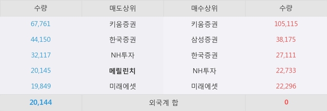 거래원 동향은 삼성증권, NH투자, 미래에셋 등이 매수 상위 목록에 나타나고 있다. 한편, 매도 창구 상위에는 메릴린치가 눈에 띄고 있다.