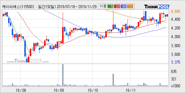 케이씨에스는 2018년 매출액 333억원과 영업이익 32억원을 기록했다. 전년대비 매출은 13.6%, 영업이익은 168.6% 각각 상승했다. 이 회사의 매출액 증감률과 영업이익 증감률은 각각 코스닥 상위 33%, 상위 10%에 해당된다.