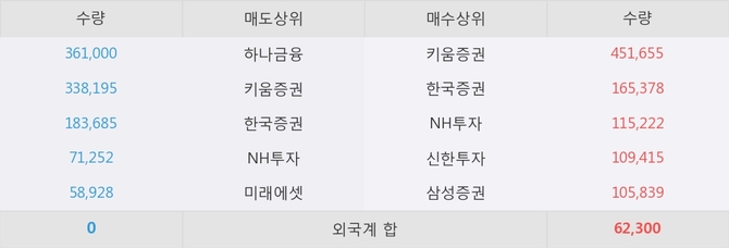 거래원 동향은 하나금융, NH투자, 미래에셋 등이 매도 상위 목록에 나타나고 있다.