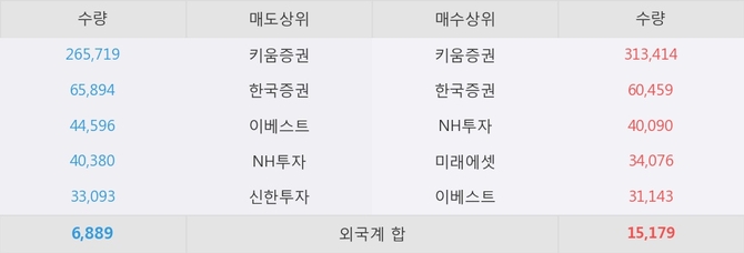 이 시각 주요 거래원은 NH투자, 키움증권, 한국증권 등이 매도 상위 창구에 자리하고 있다.