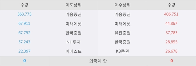 이 시각 주요 거래원은 미래에셋, 키움증권, 유진증권 등이 매수 상위 창구에 자리하고 있다.