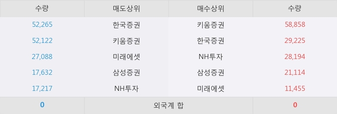 아직까지 외국계 증권사 창구를 통한 매매는 발생하지 않고 있다. 그리고 이 시간 한국증권이 매수창구상위에 올라있는 종목은 이 종목 이외에도 버추얼텍, 한라홀딩스 등이 있다.