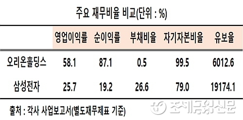 ■ 오리온홀딩스, 영업이익률 삼성전자 25.7%의 2배↑...부채비율 0.5% ‘초우량’