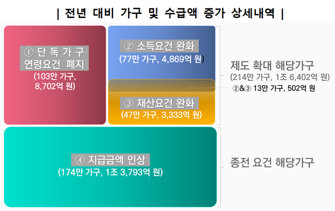 특히, 올해 단독가구 연령요건 폐지로 인해 30세 미만 청년층 26만 가구가 약 1000억원을 받은 것으로 나타났다.