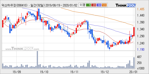 덕신하우징의 2018년 매출액은 전년대비 7.5% 늘어난 1354억원이고, 영업이익 또한 전년대비 29.8% 늘어난 106억원을 기록했다. 이 회사의 매출액 증감률과 영업이익 증감률은 각각 코스닥 상위 44%, 상위 29%에 해당된다.