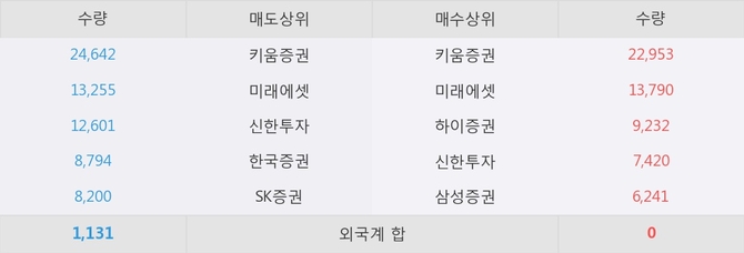 거래원 동향은 미래에셋, 삼성증권 등이 매수 상위 목록에 나타나고 있다.