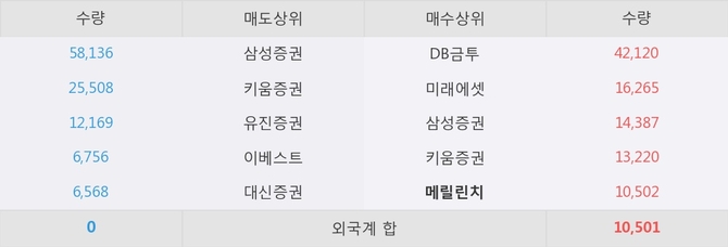 이 시각 주요 거래원은 삼성증권, 키움증권, 유진증권 등이 매도 상위 창구에 자리하고 있다. 한편, 매수 창구 상위에는 메릴린치가 눈에 띄고 있다.