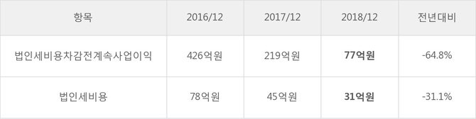 진양홀딩스의 지난 3년 동안 법인세 납부액 추이를 보면 각각 78억원, 45억원, 31억원으로 매년 감소하고 있다.