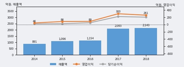 최근 3년간의 실적을 살펴보면 안정적 성장세를 보이고 있다. 최근 3년간 매출로 볼 때 매년 꾸준히 증가하고 있다. 다만 최근에 그 증가폭이 다소 감소하고 있다.