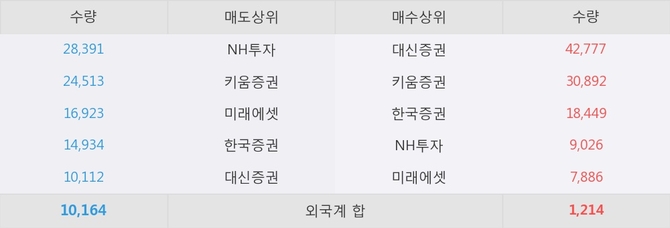 거래원 동향은 NH투자, 미래에셋 등이 매도 상위 목록에 나타나고 있다.