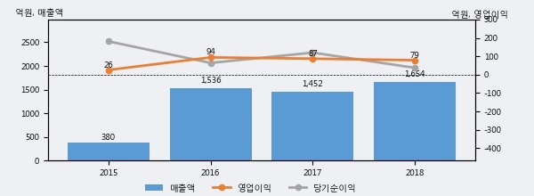 최근 실적을 살펴보면 2018년 매출액이 최근 4년 중 가장 높은 실적을 기록했음을 알 수 있다. 이전 최고 실적이었던 2016년 보다도 7.7%(118억 2천만원) 늘어난 것으로 나타났다.