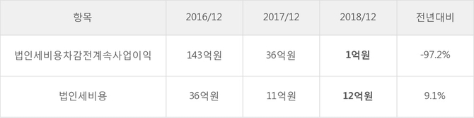 세중의 지난 3년 동안 법인세 납부액 추이를 보면 2017년에는 감소했으나, 작년에는 12억원으로 증가했다.