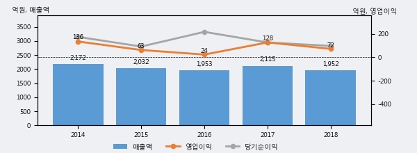 모토닉의 2018년 매출액은 전년대비 -7.7% 줄어든 1952억원이고, 영업이익 역시 전년대비 -43.2% 줄어든 72억원을 기록했다. 이 회사의 매출액 증감률과 영업이익 증감률은 각각 코스피 하위 16%, 하위 24%에 해당된다.