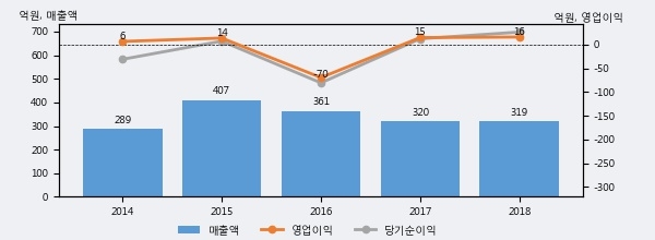 최근 3년간의 실적을 살펴보면, 매출액은 3년 연속 하락하고 있으나 그 하락폭은 줄어들고 있음을 알 수 있다.