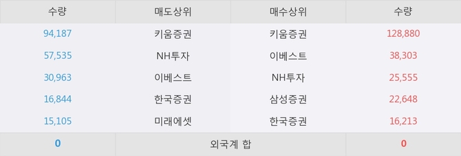 아직까지 외국계 증권사 창구를 통한 매매는 발생하지 않고 있다. 그리고 이 시간 이베스트가 매수창구상위에 올라있는 종목은 이 종목 이외에도 샘표, 원풍 등이 있다.