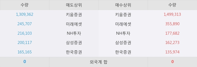 거래원 동향은 미래에셋, NH투자, 삼성증권 등이 매수 상위 목록에 나타나고 있다.