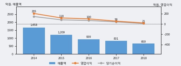 최근 3년간의 실적을 살펴보면, 매출액은 3년 연속 하락하고 있고 그 하락폭이 확대되고 있어서 투자자들은 주의깊게 살펴볼 필요가 있다.
