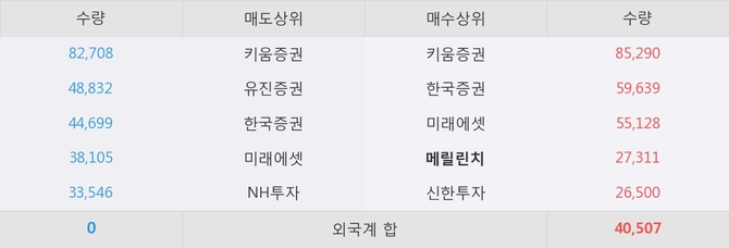 거래원 동향은 메릴린치, 미래에셋이 매수 상위 목록에 나타나고 있다.