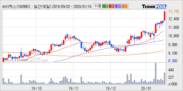 추세선으로 보면 현재 단기·중기 이평선이 정배열 상태로 전형적인 상승세를 보이고 있다. 최근 이 종목의 차트에서 최근 60일 매물대 돌파 등의 특이사항이 발생했다.
