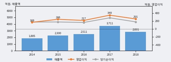 삼익THK의 2018년 매출액은 2831억으로 전년대비 -23.7% 하락했고, 영업이익 역시 255억으로 전년대비 -27.0% 하락했다. 이 회사의 매출액 증감률과 영업이익 증감률은 각각 코스피 하위 4%, 하위 35%에 해당된다.