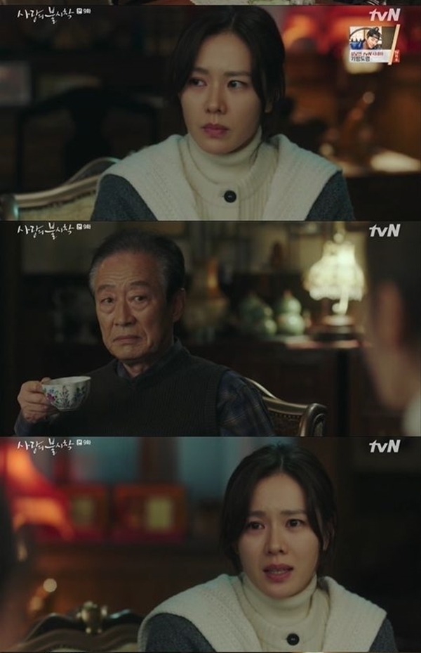 18일 오후 방송된 tvN '사랑의 불시착' 9화에서는 윤세리(손예진 분)와 현빈의 아버지인 북한 총정치국장 리충렬(전국환 분)이 만나는 장면이 방송됐다.