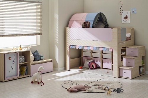 자녀의 수에 맞춰 활용할 수도 있다. 자녀 한 명이 사용할 경우에는 1층 공간에 수납장, 교구장 등을 두고 쓰다가 두 명이 되면 매트리스를 놓고 2인 침대로 만들 수 있다. 아이가 크면 상부와 하부를 분리해 1층 단독침대로 쓸 수도 있다.