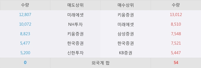 거래원 동향은 미래에셋, 삼성증권 등이 매수 상위 목록에 나타나고 있다.