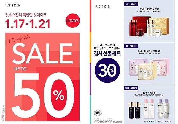 (조세금융신문=김명우 기자) 잇츠한불의 코스메슈티컬 브랜드 잇츠스킨이 오는 21일까지 ‘잇데이즈 정기세일’ 및 ‘설맞이 선물 기획전’을 연다.