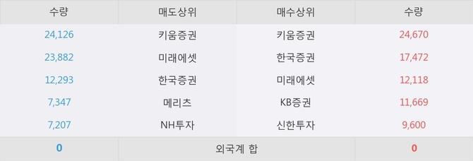 거래원 동향은 미래에셋, 메리츠, NH투자 등이 매도 상위 목록에 나타나고 있다.