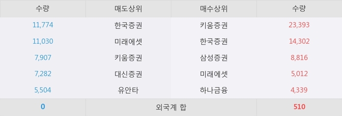 거래원 동향은 삼성증권, 미래에셋, 하나금융 등이 매수 상위 목록에 나타나고 있다.