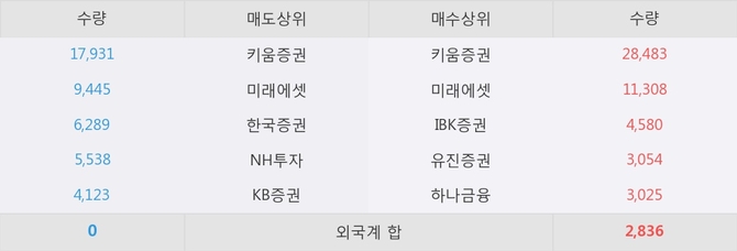 거래원 동향은 미래에셋, 하나금융 등이 매수 상위 목록에 나타나고 있다.