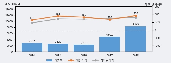 최근 실적을 살펴보면 2018년 매출액이 최근 5년 중 가장 높은 실적을 기록했음을 알 수 있다. 이전 최고 실적이었던 2017년 보다도 69.5%(3408억 1천만원) 늘어난 것으로 나타났다.
